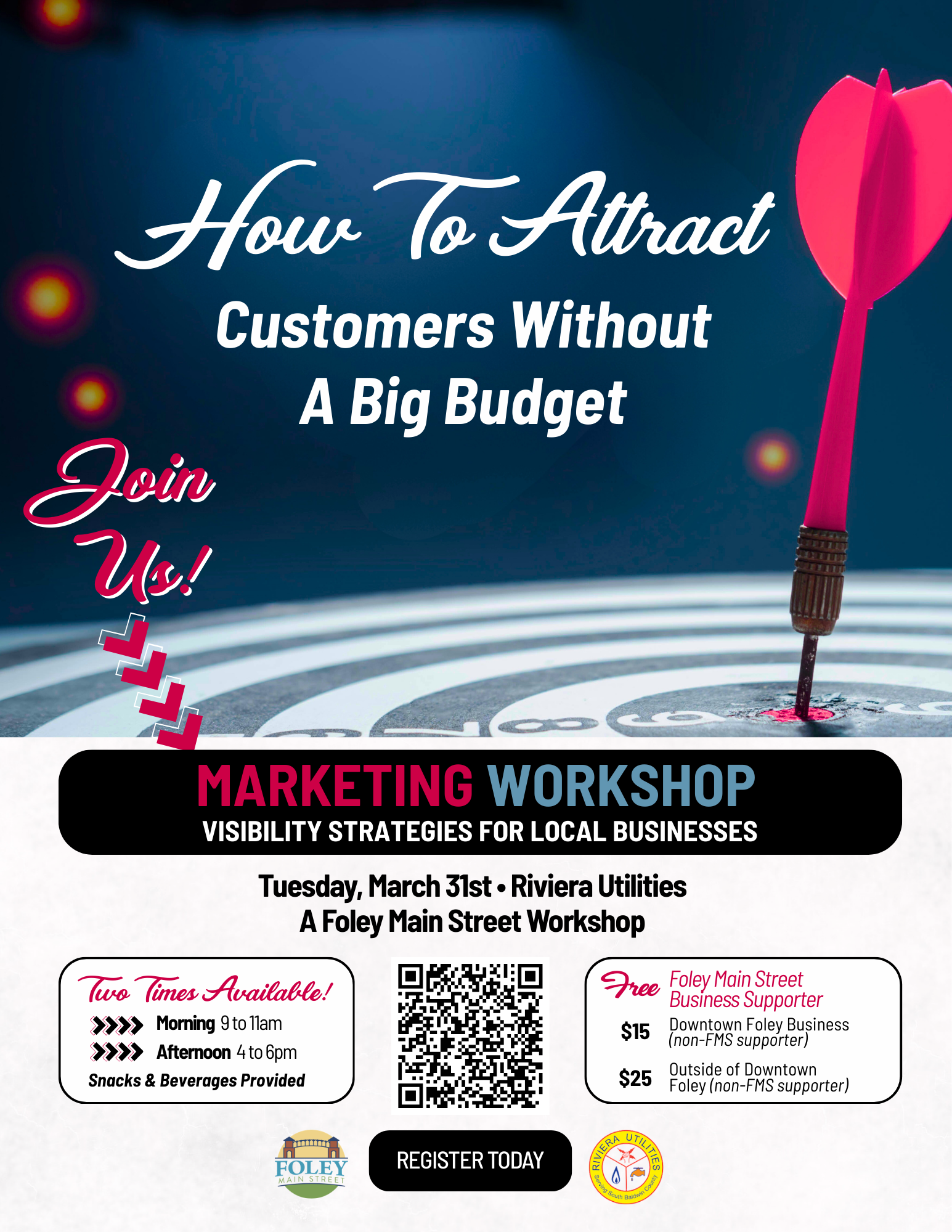 Foley Main Street will host a practical marketing workshop designed to help local businesses attract more customers through creative visibility strategies on Tuesday, March 31 at Riviera Utilities.